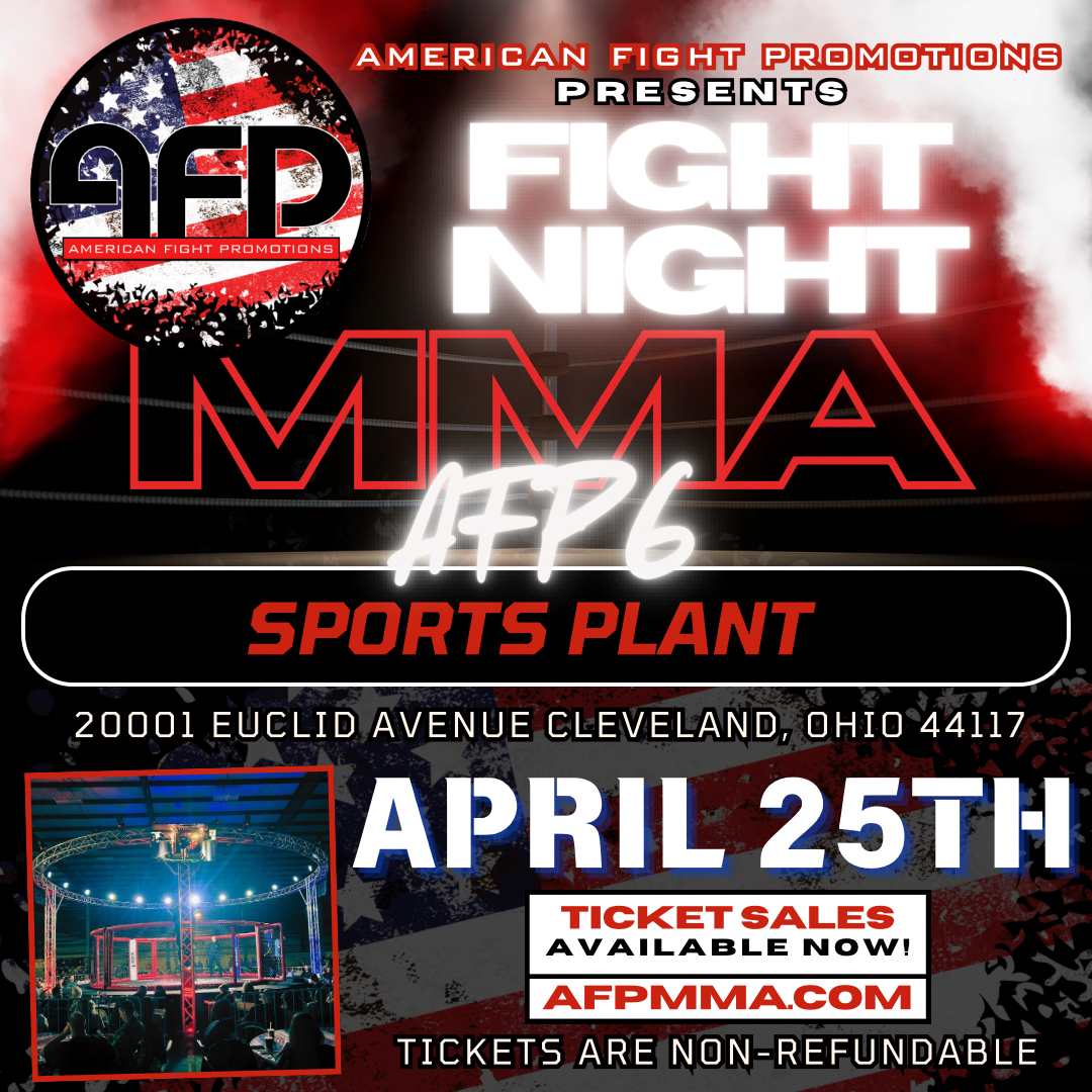Read more +23 February 2026 By kring.michelle@gmail.com in NEWSFOR IMMEDIATE RELEASE CLEVELAND, OH — American Fight Promotions (AFP) is proud to announce AFP 6, taking place on April 6, 2026, at The Sports Center, located at 20001 Euclid Ave, Cleveland, Ohio. AFP 6 promises an electrifying night of live mixed martial arts, delivering the intensity, atmosphere, and unforgettable moments that have become synonymous